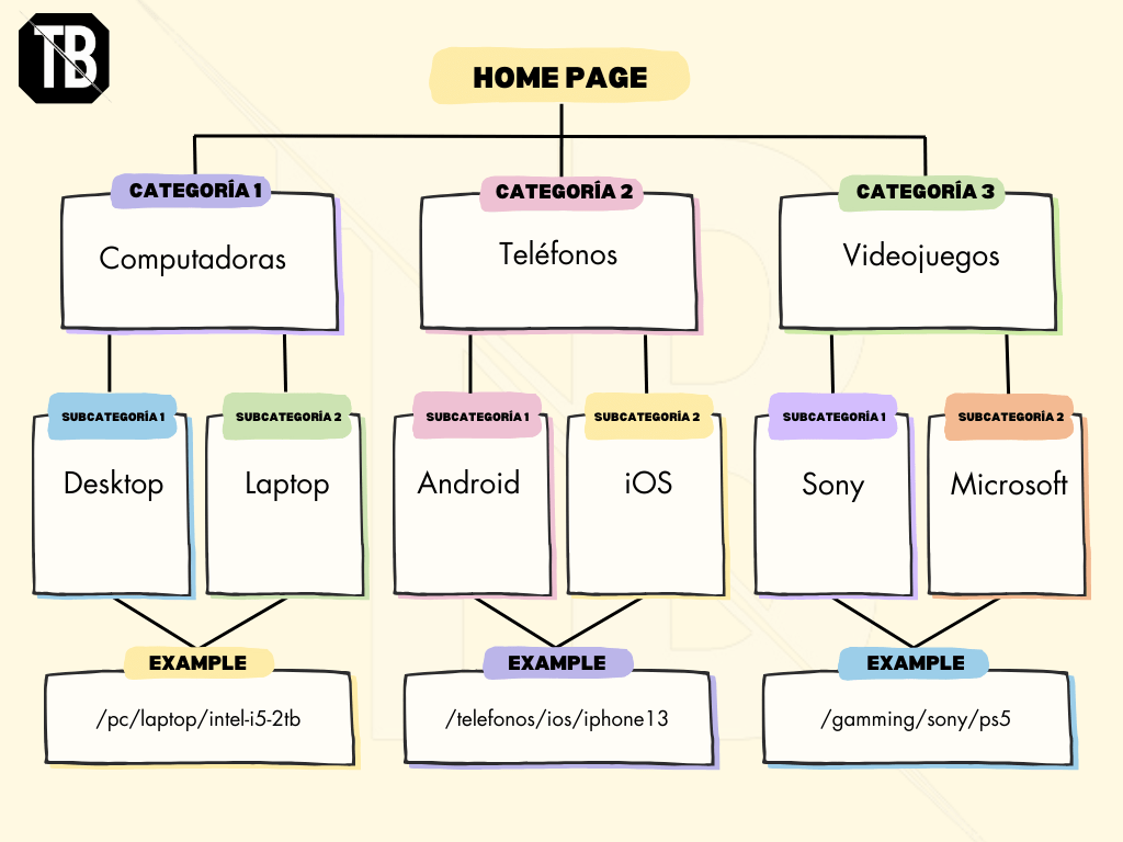 Una arquitectura plana significa que los usuarios (y los rastreadores de los motores de búsqueda) pueden llegar a cualquier página de nuestro sitio web en 4 clics o menos.
