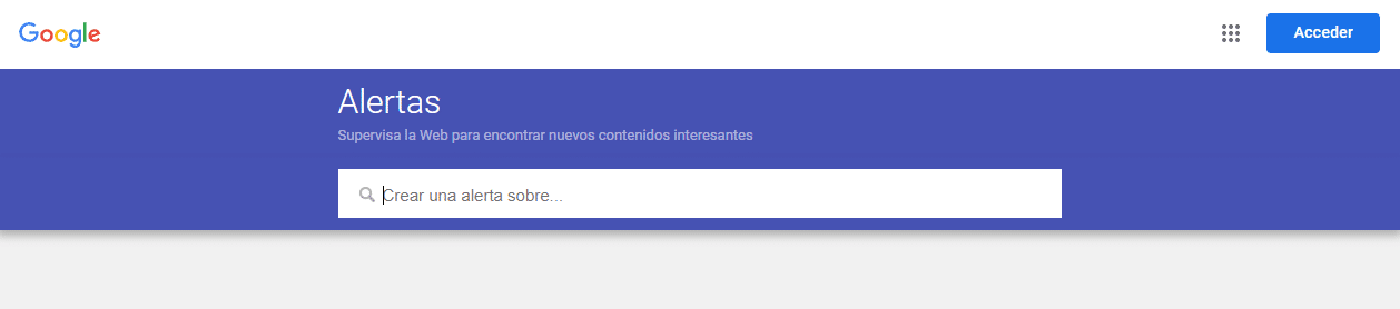 La configuración de las alertas es realmente muy simple. Cuando entres en la página tendrás que elegir una palabra o nombre clave sobre el que quieres que se te informe.