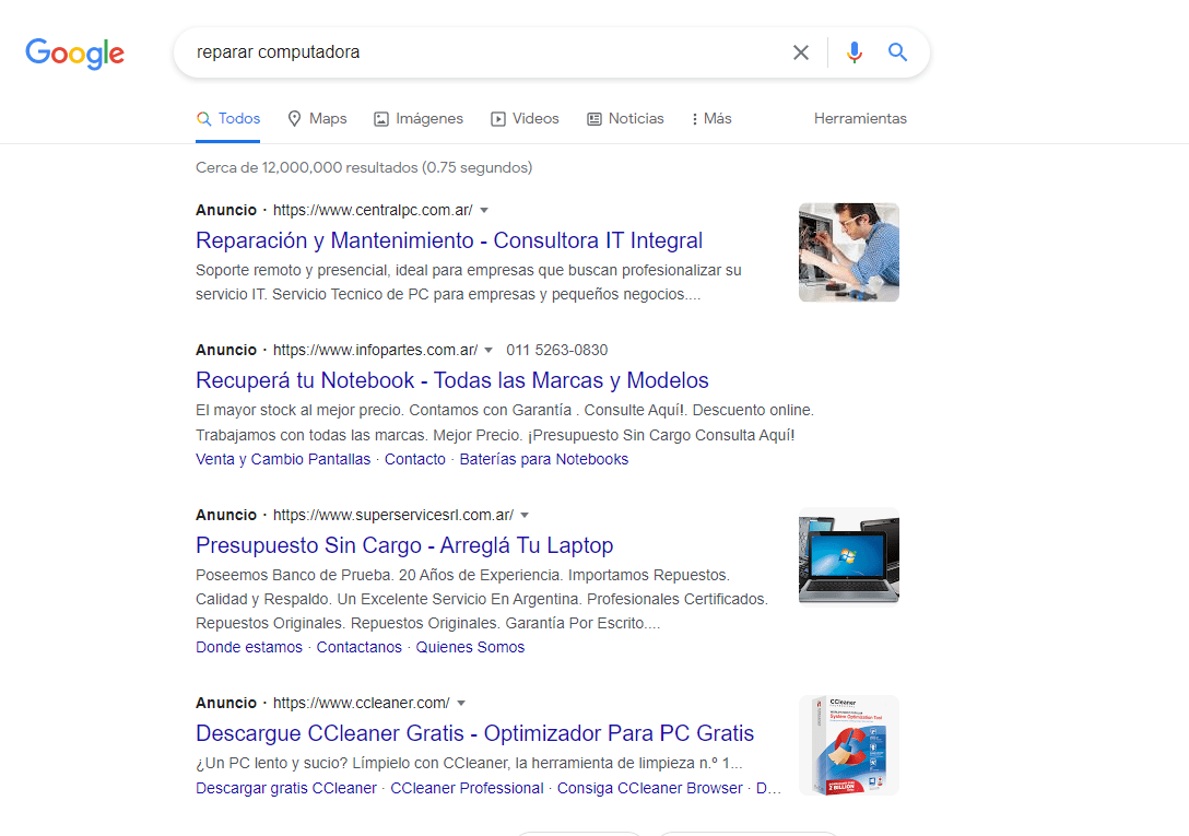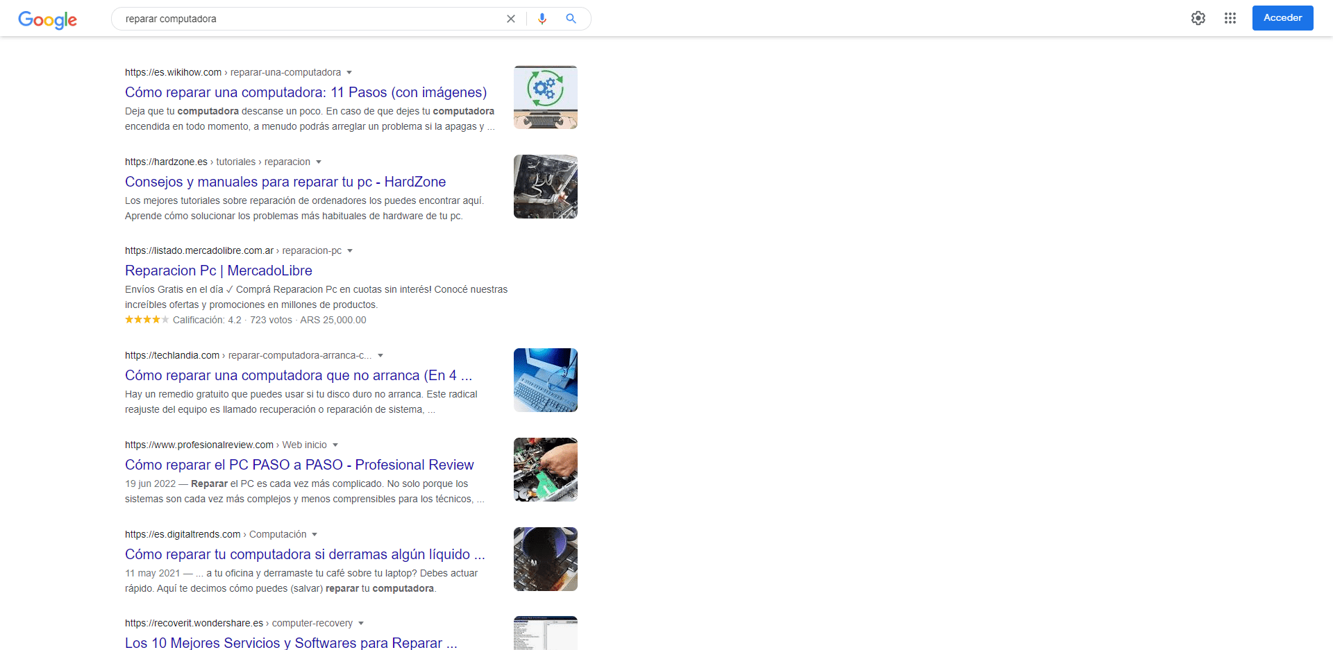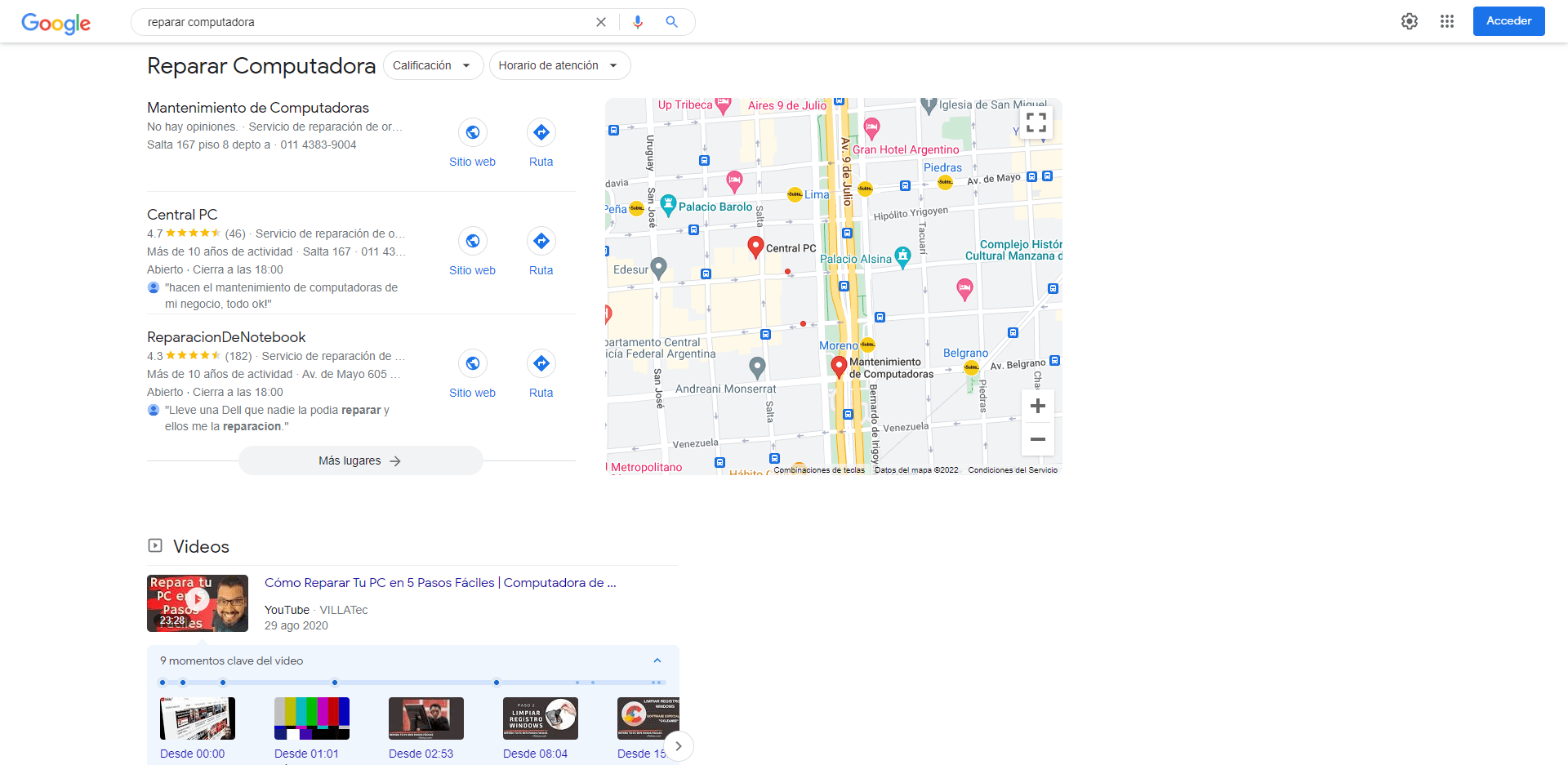 Vamos con un ejemplo simple: Estás con la computadora, y empieza a funcionar mal. Claramente, necesitas un técnico, pero no tenés a nadie de confianza que conozcas. Acto seguido, lo vas a buscar en Google.