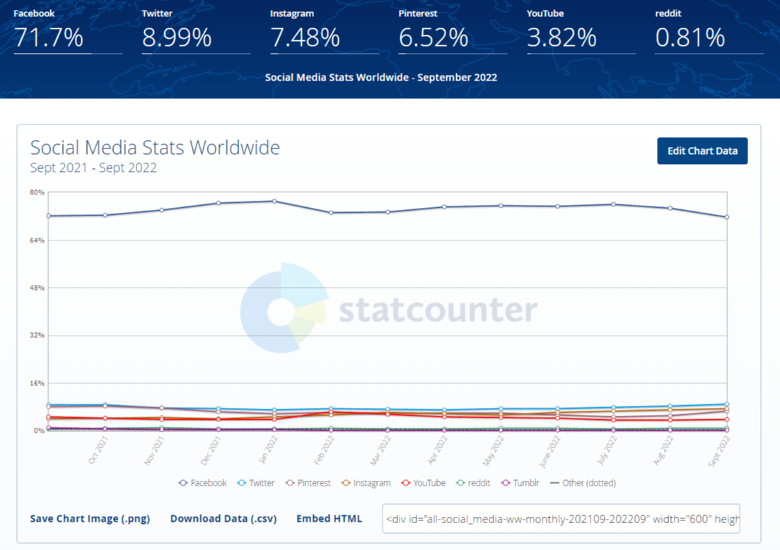 Según GlobalstatCounter, a nivel mundial, Pinterest es la 4 red social más visitada a nivel mundial.