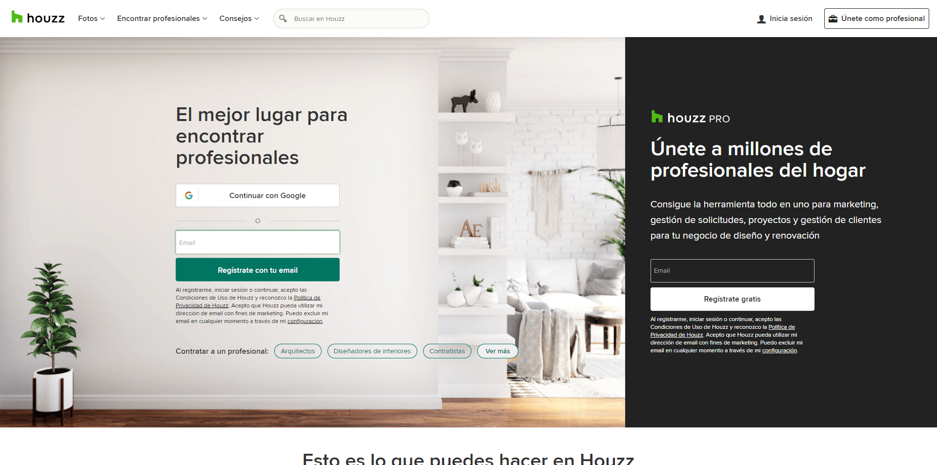 Un ejemplo es Houzz, que se especializa en productos y servicios para el hogar.