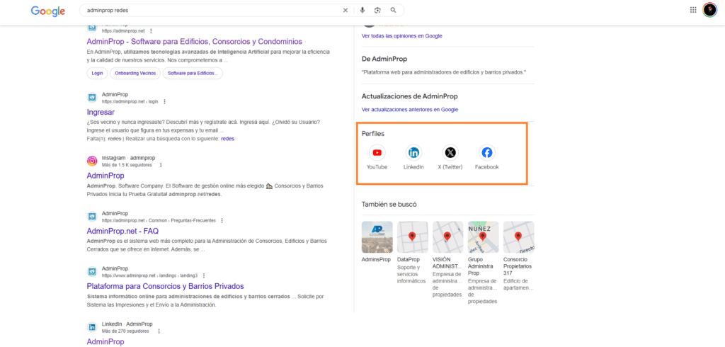 Redes sociales como LinkedIn permiten ofrecer información de contacto que aparece dentro de los resultados orgánicos.