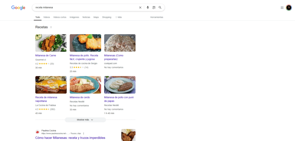 Como parte de los Rich Snippets, las cajas sobre recetas que aparecen en la cima de las SERPs, están fuertemente relacionadas con la primera posición orgánica de los resultados.