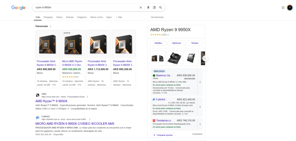 Sin embargo, como primera posición orgánica es posible posicionarse y exhibir la foto, precio, breve descripción y la disponibilidad del producto en un comercio electrónico.